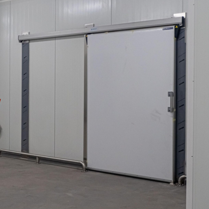 Drzwi przesuwne do chłodni to praktyczne i oszczędzające przestrzeń rozwiązanie dla obiektów, w których liczy się efektywne wykorzystanie miejsca. Skrzydło drzwiowe otwiera się równolegle do ściany na specjalnej szynie, dzięki czemu nie zajmuje dodatkowej przestrzeni w korytarzu ani przed wejściem do komory chłodniczej. Jest to szczególnie istotne w wąskich przejściach i pomieszczeniach technicznych.