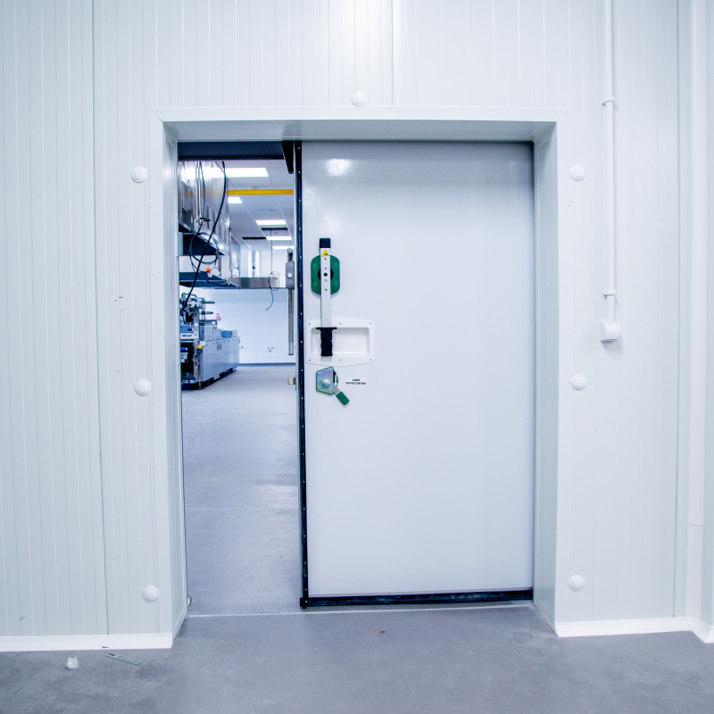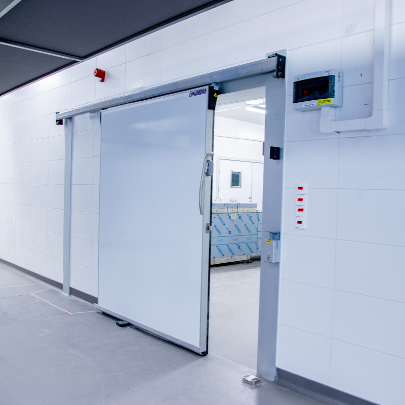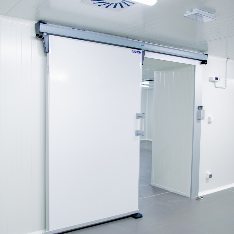 Drzwi przesuwne Klimors stanowią niezawodne rozwiązanie dla przemysłu spożywczego, zapleczy kuchennych, supermarketów oraz pomieszczeń typu clean room.
