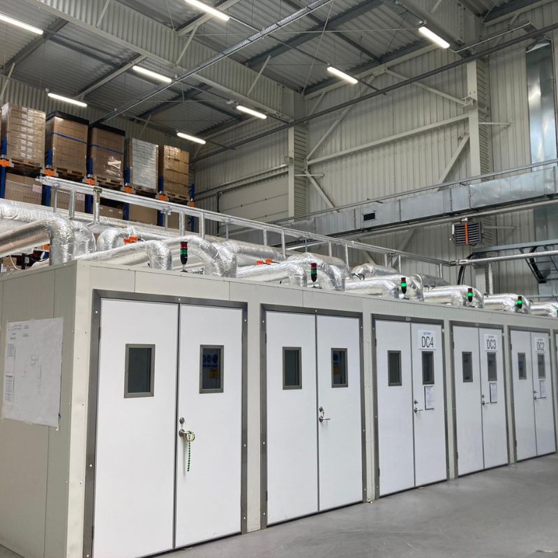 Drzwi chłodnicze zlicowane charakteryzują się wyjątkową odpornością na uderzenia. Konstrukcja płata drzwi oparta jest na aluminiowej ramie z poszyciem z żywicy poliestrowej wzmocnionej włóknem szklanym.