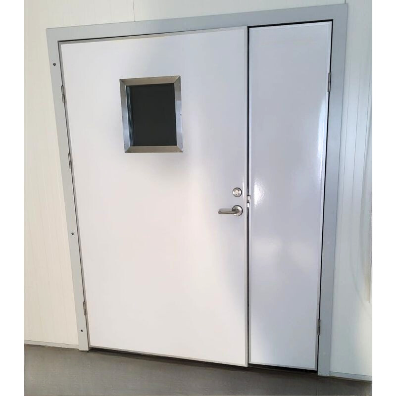 Skrzydło jest w pełni osadzone w ościeżnicy, co zapewnia jednolitą, zlicowaną powierzchnię. Ościeżnica jest spawana w narożach, dzięki czemu konstrukcja jest wyjątkowo solidna i trwała. To idealne rozwiązanie do korytarzy i przejść, gdzie istotne jest zachowanie maksymalnej przestrzeni użytkowej.