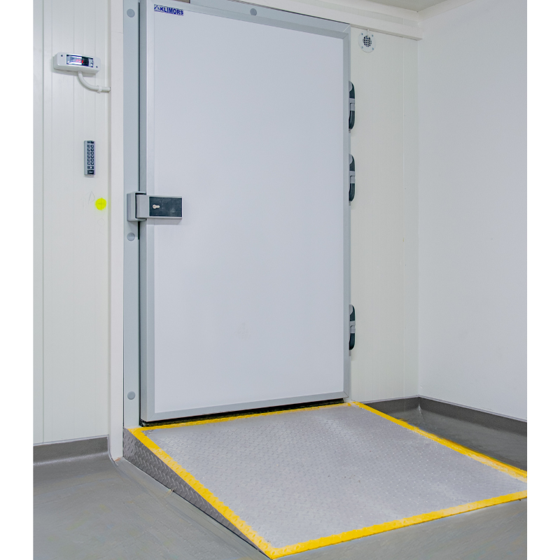 Drzwi uchylne mroźnicze produkcji firmy Klimors do zastosowania w komorach chłodniczych o ujemnej temperaturze docelowej (tzw. mroźniach), instalowanych w sklepach spożywczych, delikatesach, restauracjach, hotelach, zakładach mięsnych oraz wielu innych placówkach.
