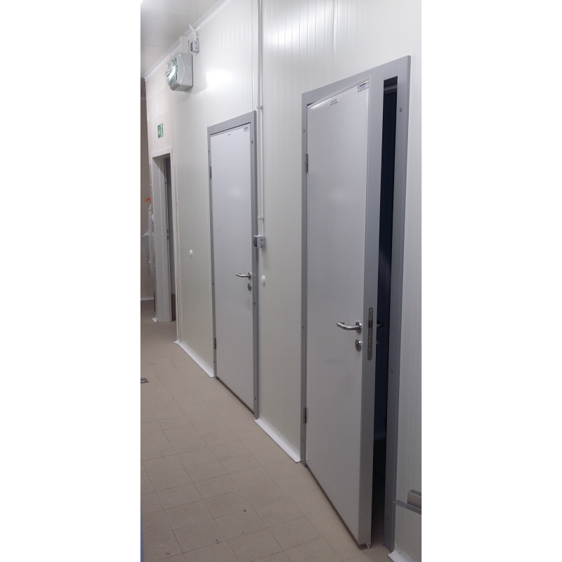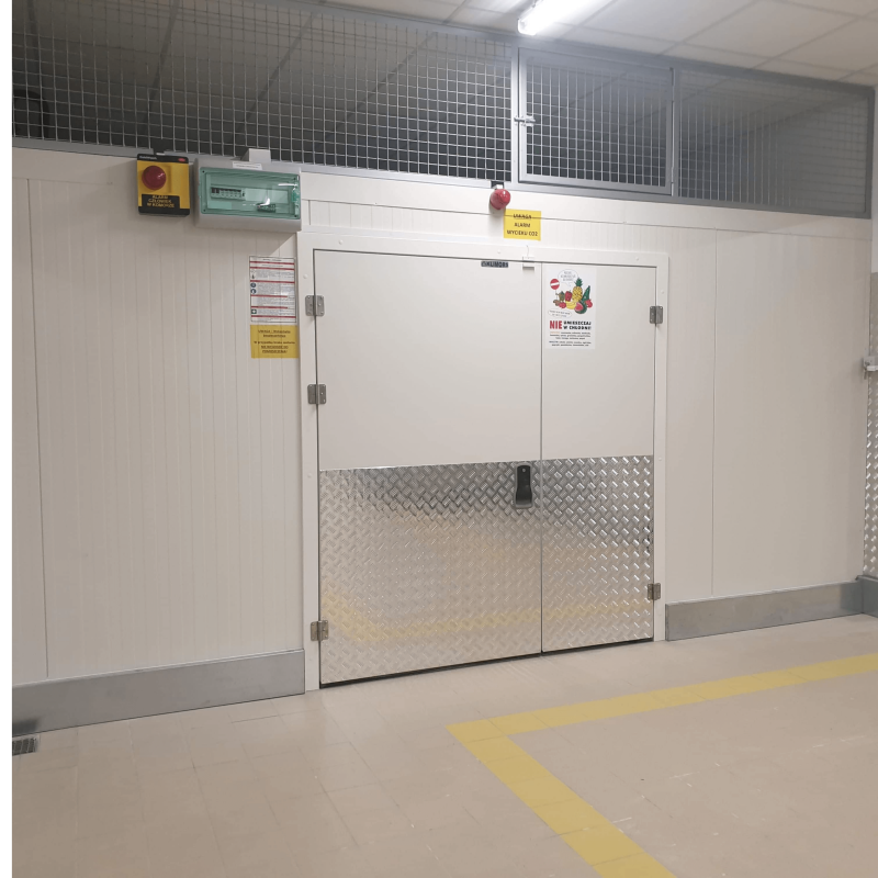 Każda komora wyposażona jest w drzwi chłodnicze bądź mroźnicze dostępne w systemie uchylnym bądź przesuwnym, których producentem jest firma Klimors. W zależności od wymagań klienta jako producent jesteśmy w stanie wykonać drzwi o dowolnym wymiarze, w kolorze z palety RAL, które spełniają standardy higieniczne oraz posiadają odpowiednie atesty i certyfikaty.